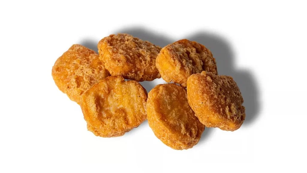 6 pieces of crispy fried chicken breast nuggets.